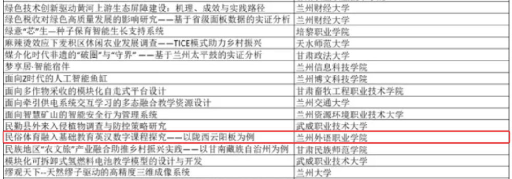 捷報(bào)頻傳,載譽(yù)而歸!在由共青團(tuán)甘肅省委、甘肅省教育廳、甘肅省科學(xué)技術(shù)廳、甘肅省工業(yè)和信息化廳、甘肅省科學(xué)技術(shù)協(xié)會(huì)、甘肅省科學(xué)院、甘肅省學(xué)生聯(lián)合會(huì)聯(lián)合主辦的第十五屆“挑戰(zhàn)杯”甘肅省大學(xué)生課外學(xué)術(shù)科技作品競(jìng)賽中,我校參賽團(tuán)隊(duì)以卓越的學(xué)術(shù)素養(yǎng)和澎湃的創(chuàng)新活力勇創(chuàng)佳績(jī),斬獲一等獎(jiǎng)2項(xiàng)、二等獎(jiǎng)3項(xiàng)、三等獎(jiǎng)2項(xiàng)!我校在該項(xiàng)被譽(yù)為中國(guó)大學(xué)生學(xué)術(shù)科技“奧林匹克”的頂級(jí)賽事中以一、二等獎(jiǎng)獲獎(jiǎng)總數(shù)創(chuàng)輝煌戰(zhàn)績(jī),譜寫了學(xué)校科技創(chuàng)新育人的嶄新篇章,生動(dòng)彰顯了我校學(xué)子矢志創(chuàng)新、追求卓越、勇攀科技高峰的時(shí)代風(fēng)貌!