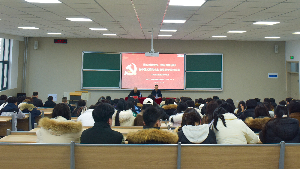 為深入學(xué)習(xí)貫徹黨的二十屆四中全會精神和習(xí)近平總書記關(guān)于學(xué)校思政課建設(shè)的重要指示精神,按照省委教育工作領(lǐng)導(dǎo)小組對甘肅省領(lǐng)導(dǎo)干部上講臺講思政課安排,12 月 31 日上午,甘肅國投集團黨委書記、董事長成廣平走進蘭州外語職業(yè)學(xué)院講授專題思政課。執(zhí)行院長宋賢鈞、副院長劉琳麗、相關(guān)部門負責(zé)人、思政課教師、各二級學(xué)院師生代表共300余人參加學(xué)習(xí)。會議由學(xué)院黨委書記殷國手主持。