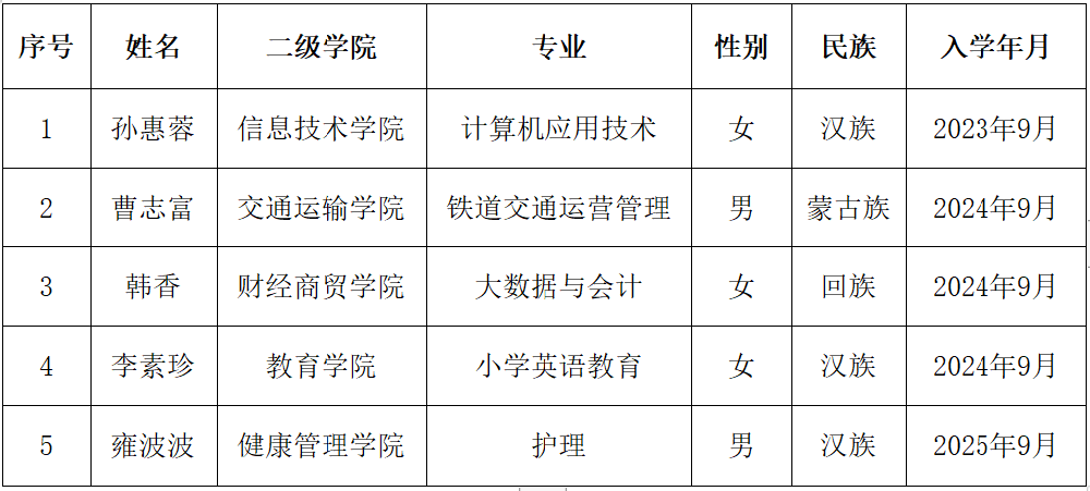 經(jīng)2025年11月3日學(xué)院院務(wù)會審議,確定孫惠蓉、曹志富、韓香、李素珍、雍波波5名同學(xué)為2025年特困生補(bǔ)助推薦人選,現(xiàn)予以公示。公示期2025年11月4日-11月10日,如有異議,請向院長信箱反映。具體名單如下: